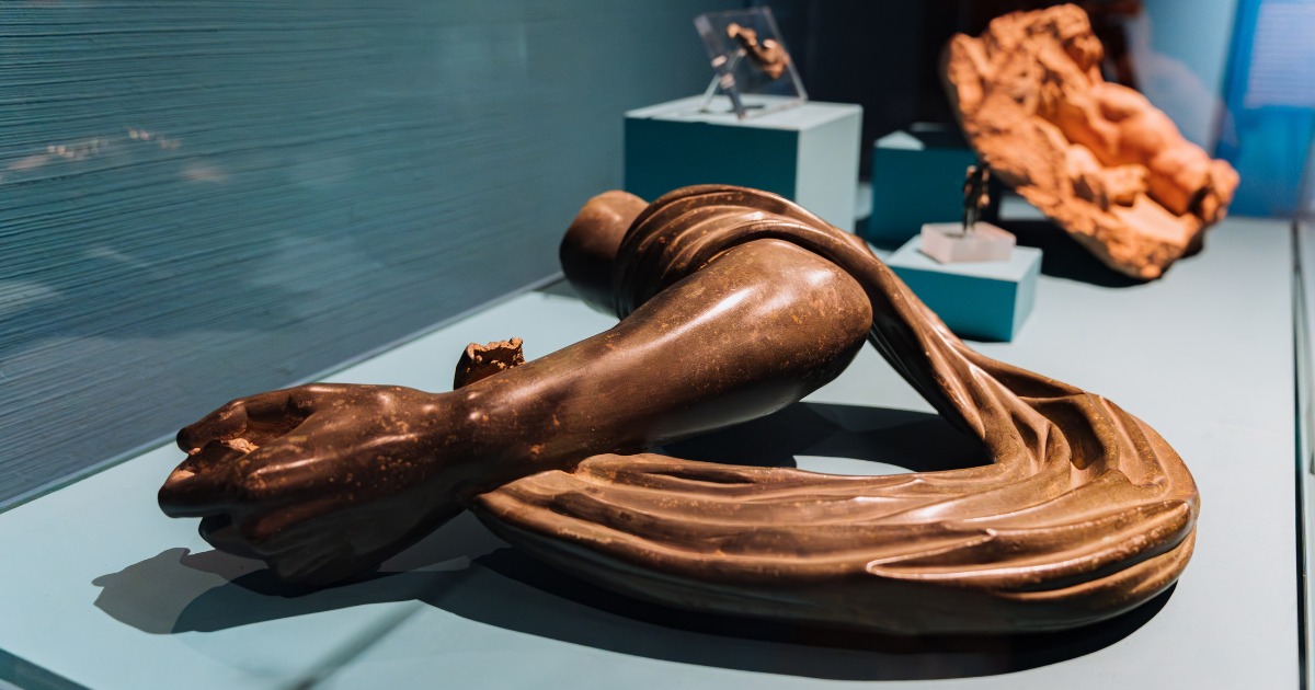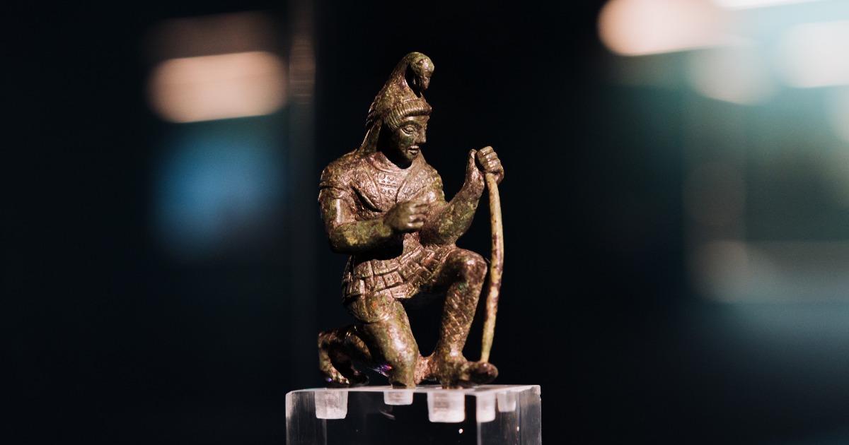 Particolarmente rilevante è il nucleo di bronzi provenienti dagli scavi recenti di San Casciano dei Bagni, uno dei complessi termali più straordinari dell’antichità, dove il ritrovamento di bronzetti votivi ed ex voto anatomici raccontano una frequentazione cultuale durata quasi mille anni, dal mondo etrusco fino all’età romana. Il percorso etrusco si chiude nella città di Marzabotto, dove il santuario del Fontile testimonia un sorprendente intreccio tra religione e ingegneria idraulica: qui il culto si lega alla gestione delle acque e al controllo del territorio, evocato anche dalla figura di Dedalo, presente in una decorazione architettonica.