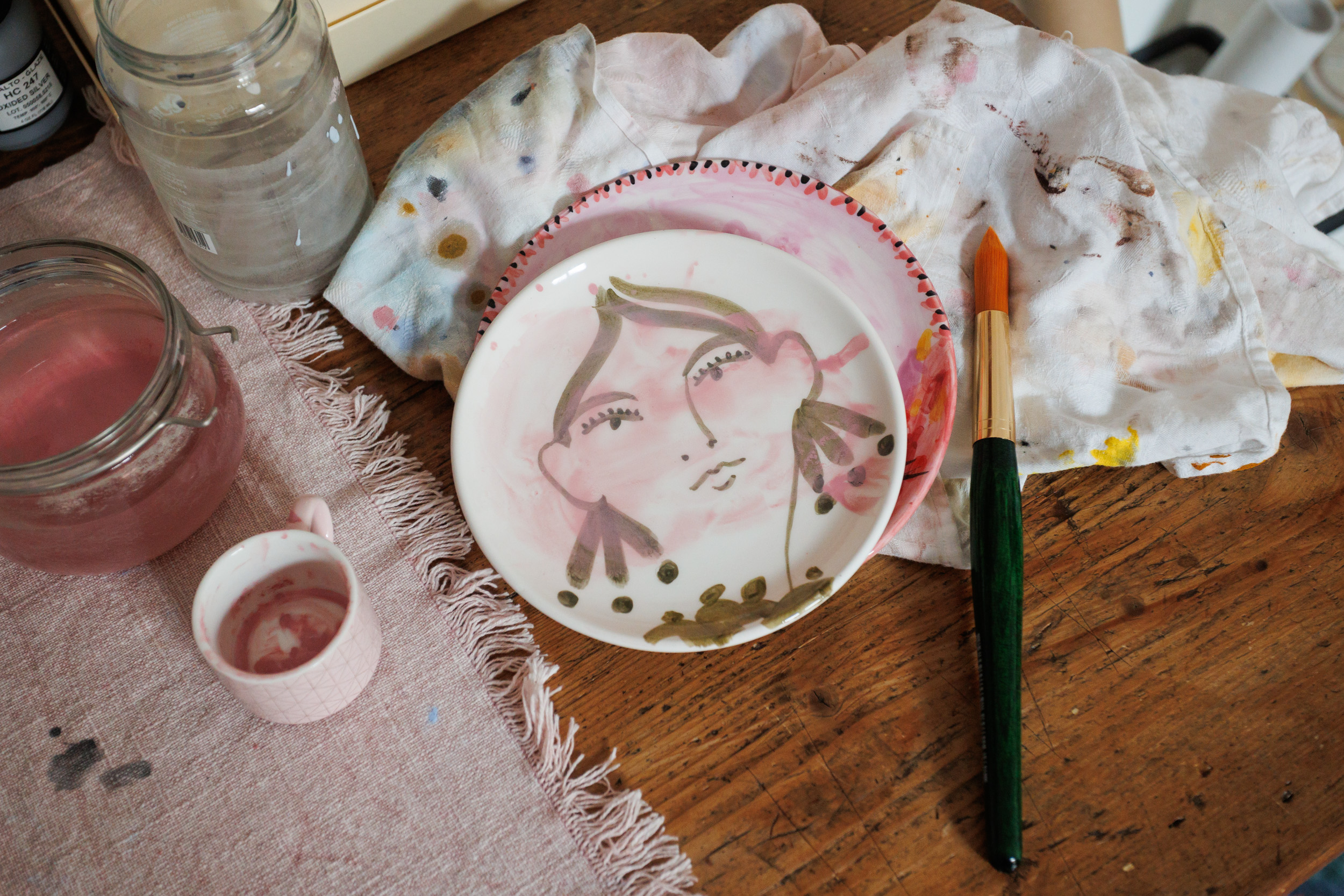 La sua casa-atelier, spazio aperto pensato anche per l’accoglienza della comunità artistica internazionale, è al centro del trentottesimo episodio della nostra serie dedicata alla relazione con gli spazi di creazione. Entrando ci si ritrova immersi in un ambiente vivo, abitato dall’arte, nella sua più luminosa espressione, ci sono illustrazioni, libri, cavalletti, colori e, ancora, piatti e cuscini da lei stessa decorati: in questo appartamento accogliente, con alti soffitti e un vago gusto retrò, anche le pareti e le piastrelle del bagno portano la firma dell'artista. Non c'è differenza tra una tela dipinta e una parete da decorare, "trascorro molte ore qui dentro - spiega -, per questo motivo l'ambiente deve essere armonico, deve farmi stare bene. Questa casa è la mia opera".